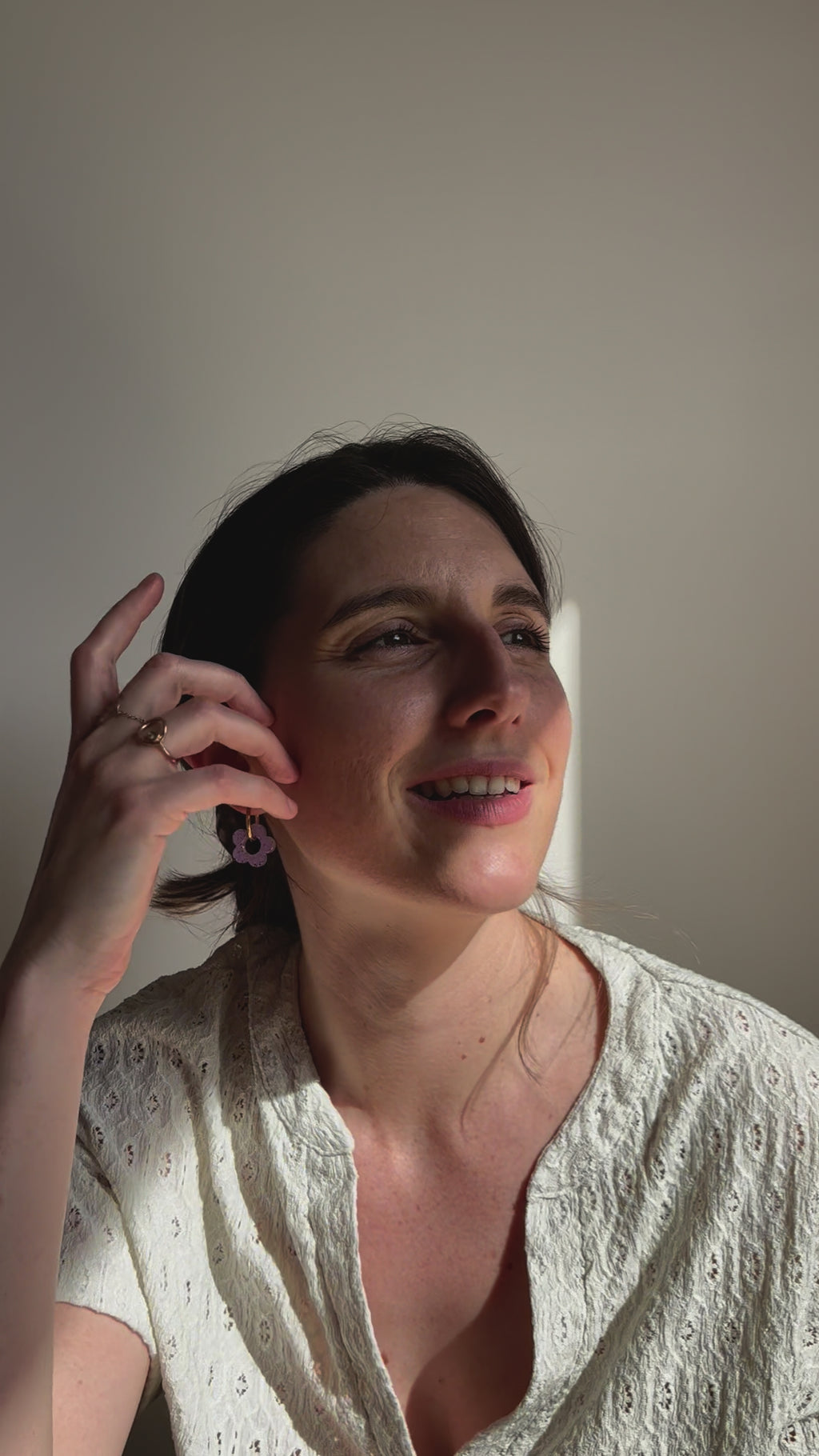 Boucles d'oreilles Moyennes Fleurs en Résine – Paillettes Lila